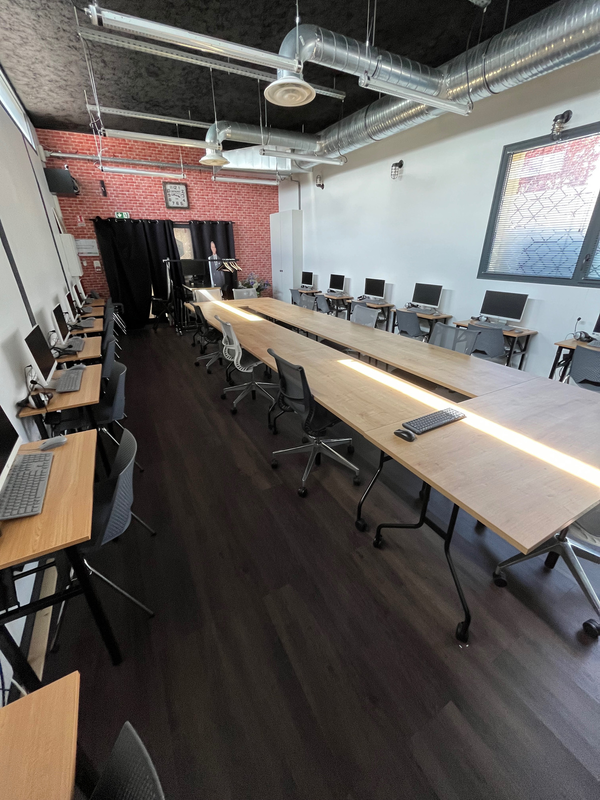 Grande salle disposant de 15 places assises et un grand écran tactile et connecté.